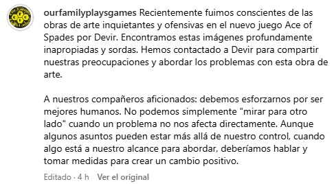 Si bien sabemos que un sector del hobby no ve estos asuntos como algo relevante, pensamos que estas situaciones deben ser tratadas con la mayor seriedad y dignidad posible, además, generan debates interesantes que enriquecen lo que hacemos y permiten a los miembros de la industria (autores, ilustradores, editoriales, influencers) dar lo mejor de si para producir mas y mejores juegos.