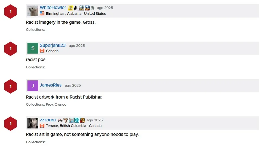 También nos recordó la polémica con el afamado juego Puerto Rico, que tuvo que ser reeditado luego de recibir críticas respecto a la forma como se cuenta la dolorosa historia de la esclavización del pueblo africano. Mientras tanto en la Board Game Geek ya se están dejando ver los comentarios de rechazo: